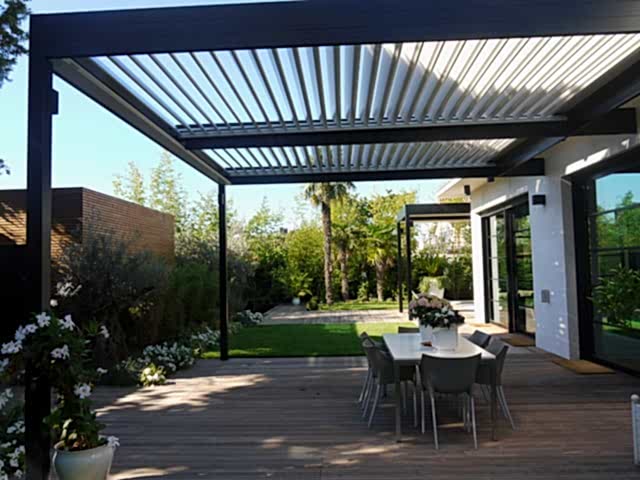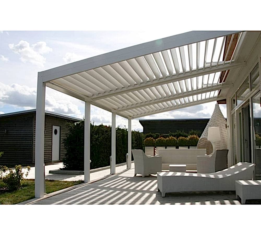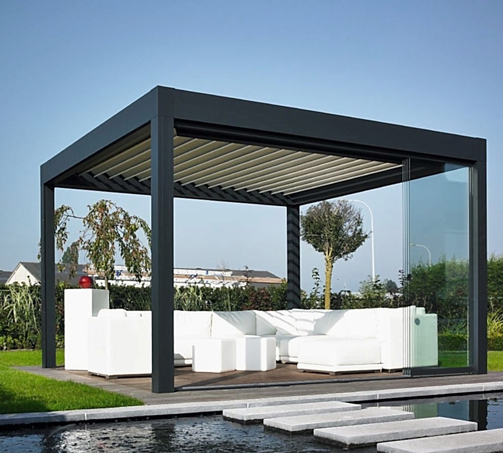 Bioklimatik pergola, gelişmiş teknolojilerle donatılmış, Rolling Roof sistemi (katlanır/toplanır tavan) özelliğiyle çalışan ve dış mekânlarda doğal gölgelendirme sağlayan modern bir pergola çözümüdür. Katlanabilir tavan sistemleriyle entegre edilen bu yapı, panellerin belirli açılarla dönebilmesi sayesinde gün ışığından maksimum düzeyde faydalanma ve doğal havalandırma imkânı sunar.